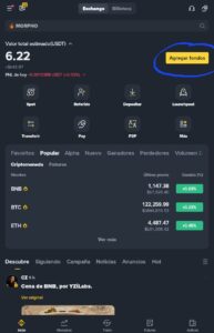 1.-Ingresa a tu cuenta de Binance y dirígete al menú «Agregar Fondos».
