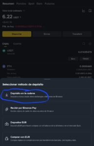 1.-Ingresa en tu cuenta Binance → Billetera → Depositar.