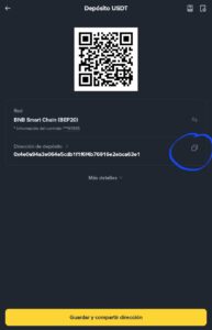 5.-Copia la dirección de tu billetera (un código largo de letras y números).