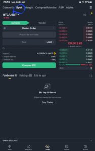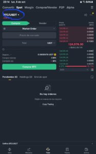 2.-Selecciona el par que quieres operar, por ejemplo, BTC/USDT.