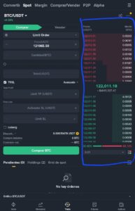 3.-Observa la sección de Libro de Órdenes (Order Book):
